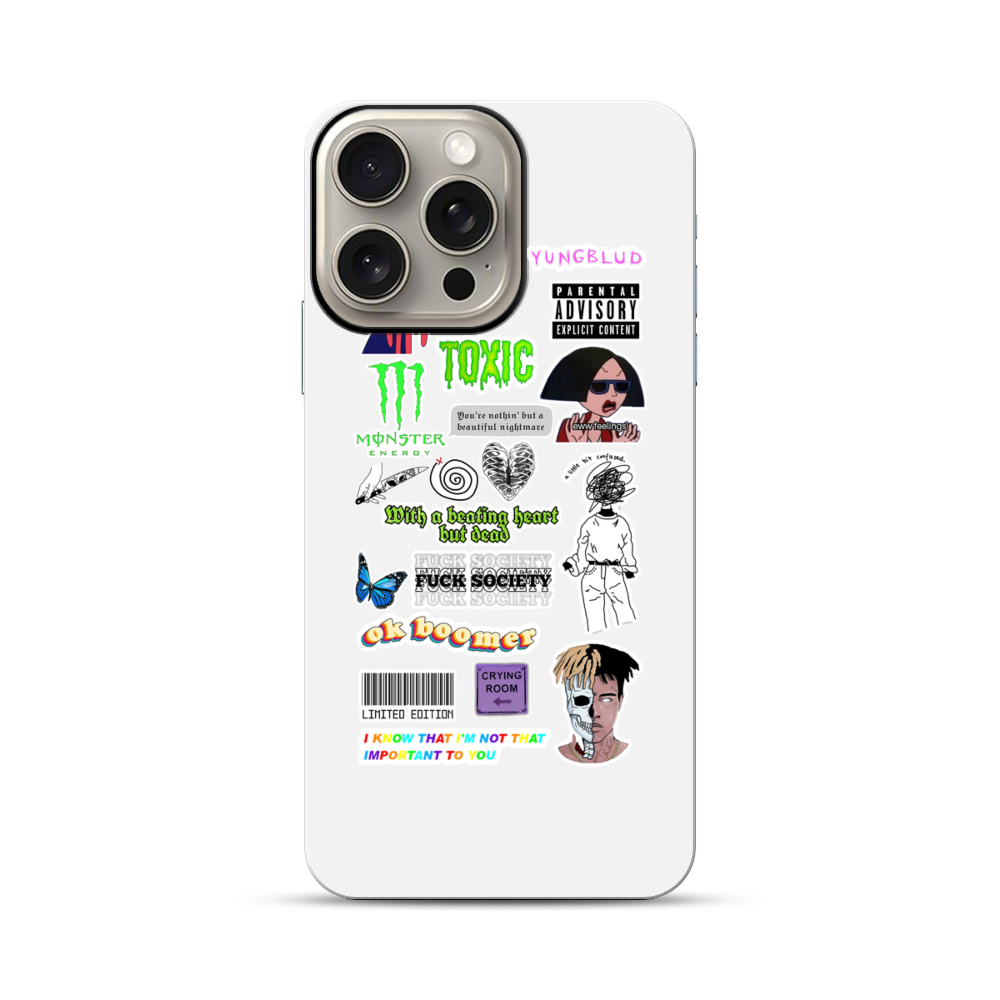 Coole Cartoon Sticker Apple iPhone 15 Pro Max Hybrid Case● Rundum bedruckbar