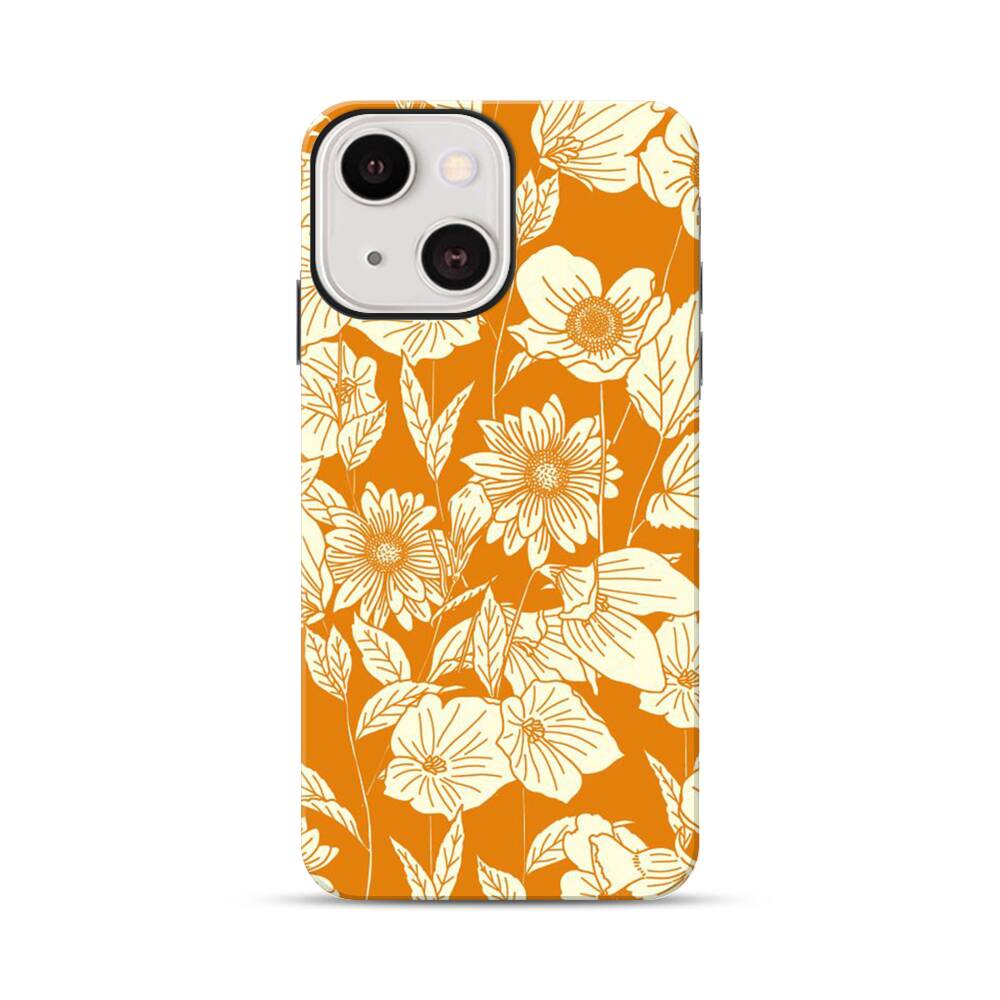 Orange Retro Blumen Apple iPhone 13 Hybrid Case● Rundum bedruckbar