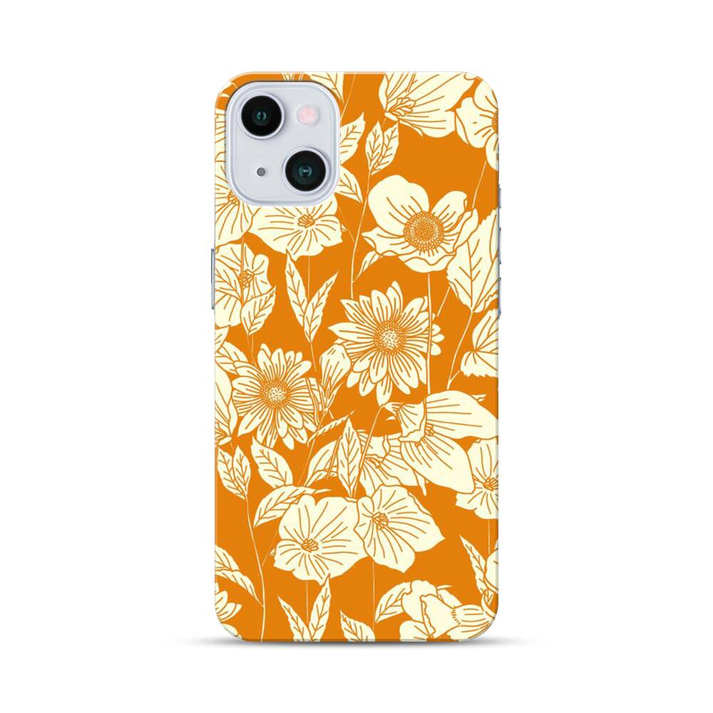 Orange Retro Blumen Apple iPhone 13 Mini Hülle● Rundum bedruckbar