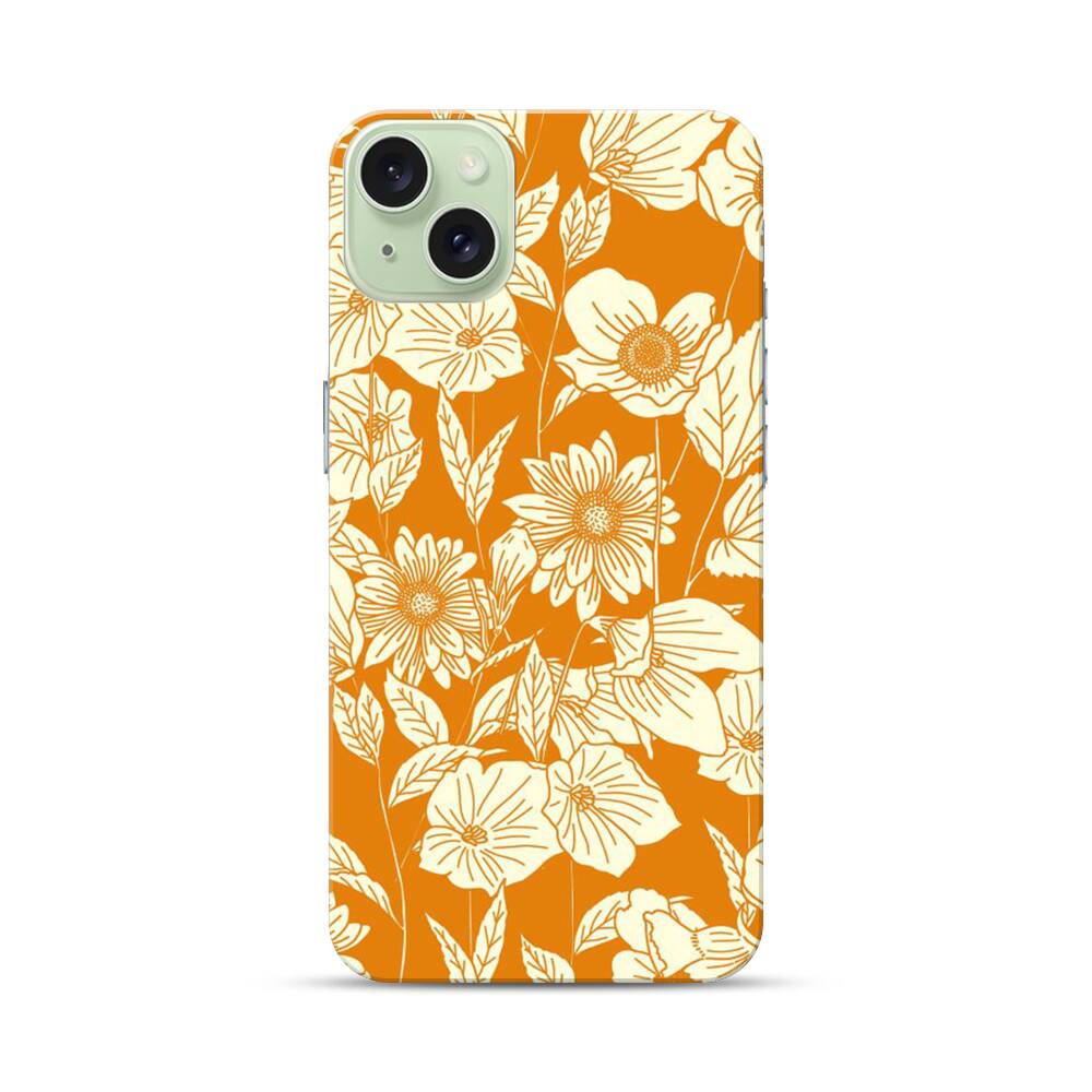 Orange Retro Blumen Apple iPhone 15 Plus Hülle● Rundum bedruckbar