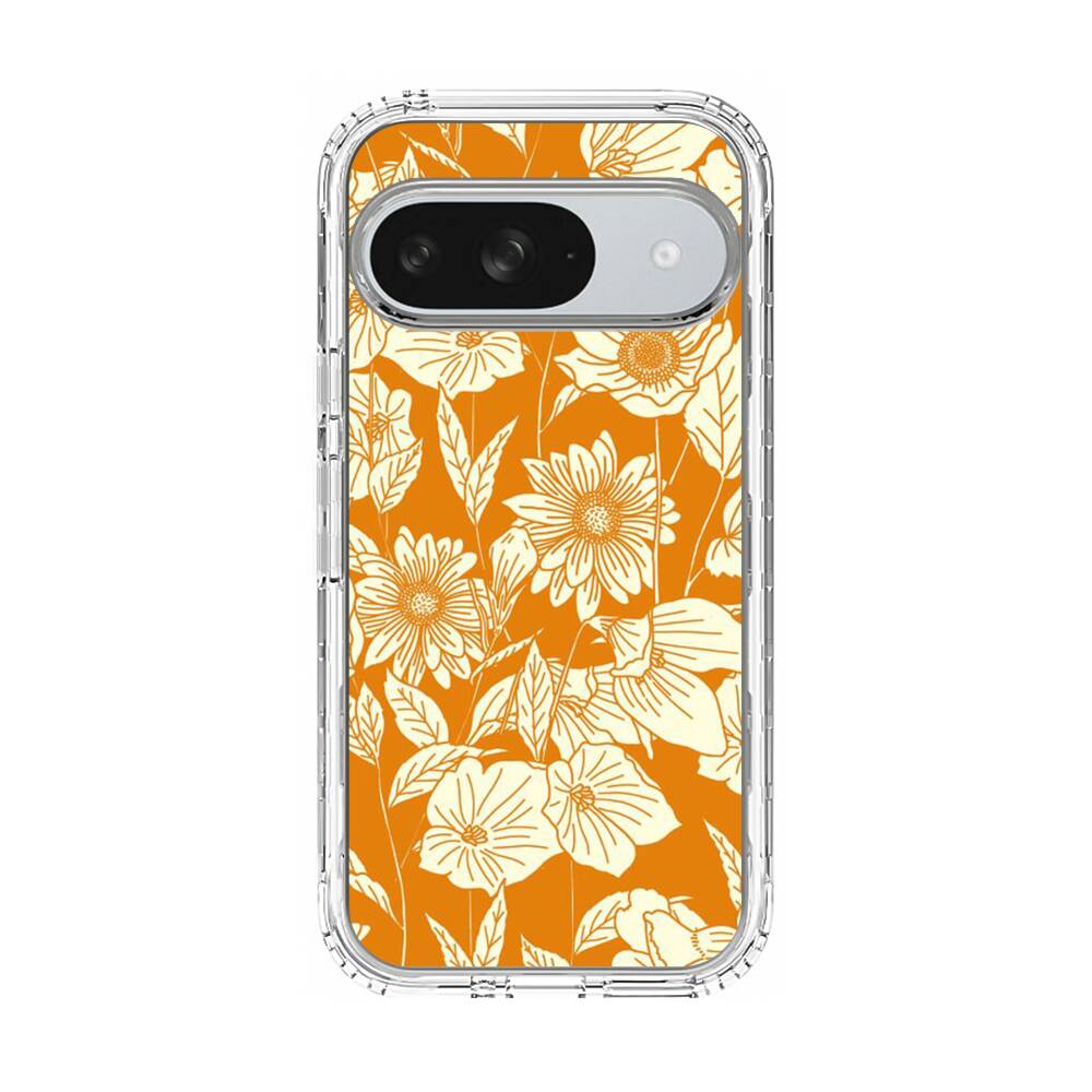 Orange Retro Blumen Google Pixel 10 Silikon Hülle● Sehr robust & langlebig