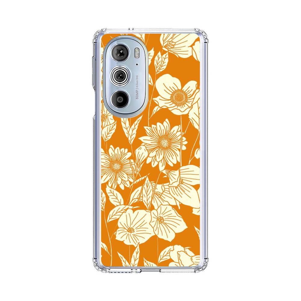 Orange Retro Blumen Motorola Edge Plus (2022) Silikon Hülle● Sehr robust & langlebig