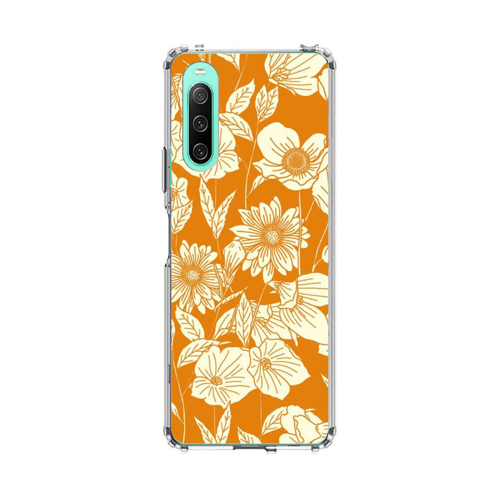 Orange Retro Blumen Sony Xperia 10 IV Silikon Hülle● Sehr robust & langlebig