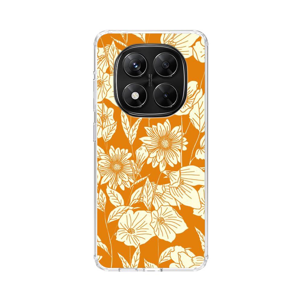 Orange Retro Blumen Xiaomi Redmi Note 14 Pro Silikon Hülle● Sehr robust & langlebig