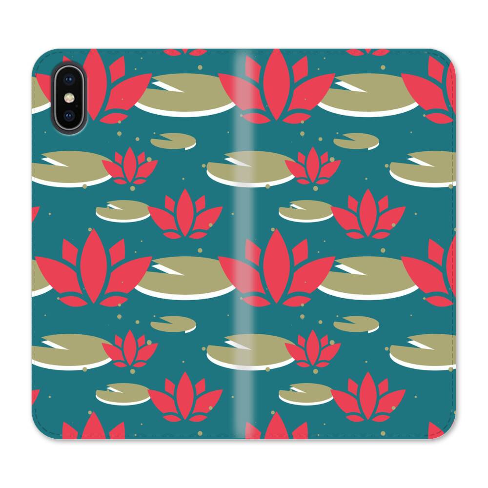 Rote Lotus iPhone X Wallet Leder Hülle● Seitlich klappbar