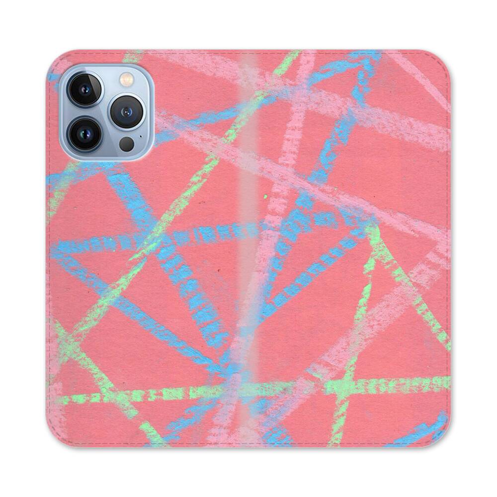 Bunte Linien auf dem pinken Hintergrund Apple iPhone 13 Pro Max Flip Case● Seitlich klappbar