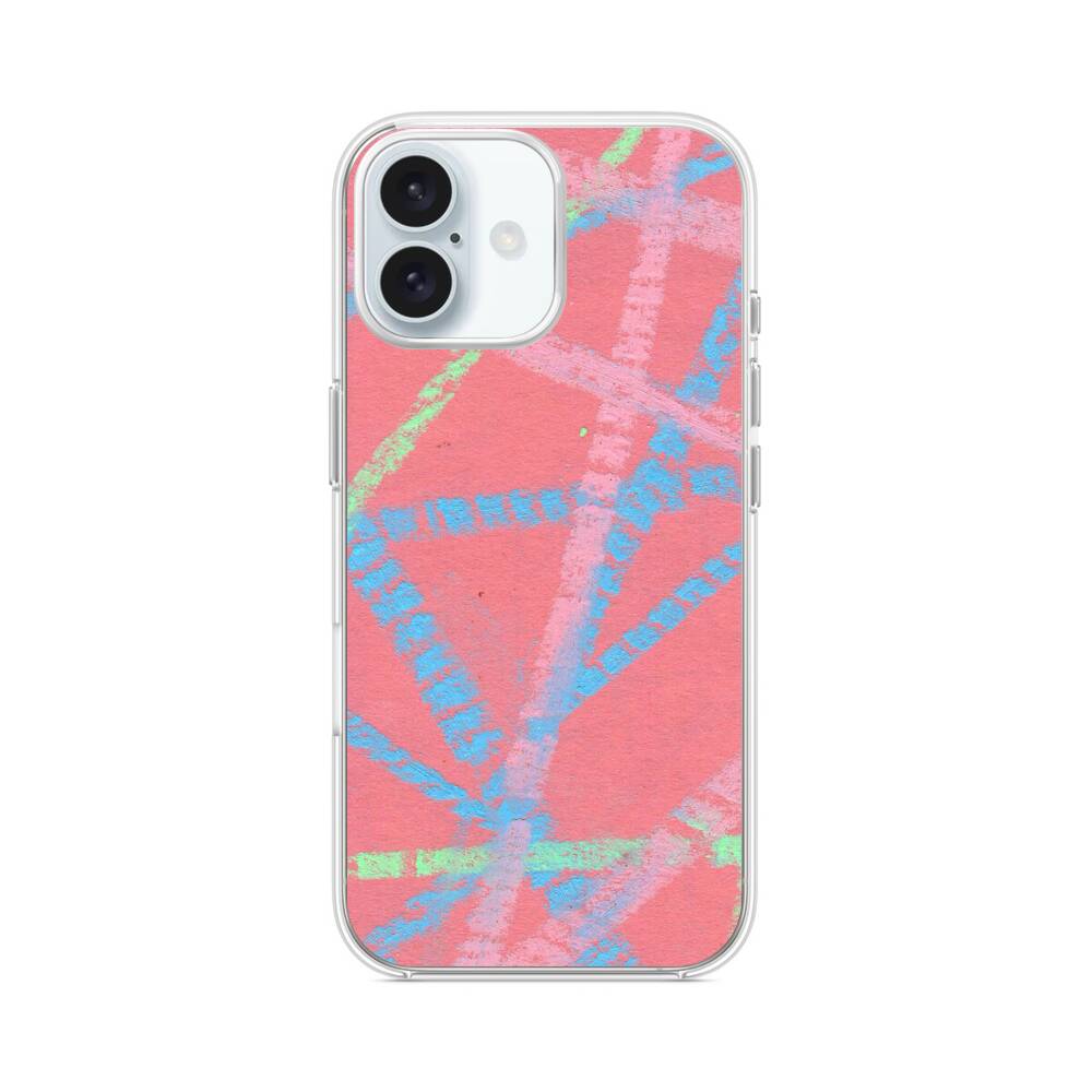 Bunte Linien auf dem pinken Hintergrund iPhone 16 Plus MagSafe‑kompatible Silikonhülle mit Kamera‑Kickstand● Sehr robust & langlebig