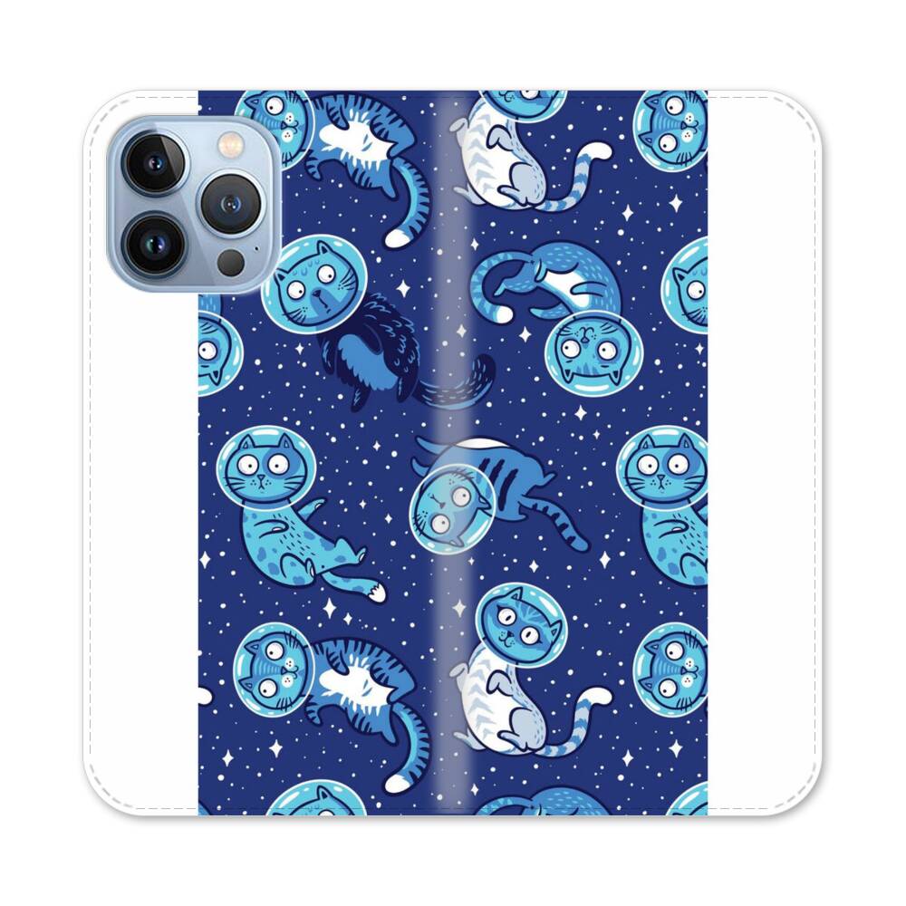 Nahtlose Muster mit Comic Katze Apple iPhone 13 Pro Max Flip Case● Seitlich klappbar