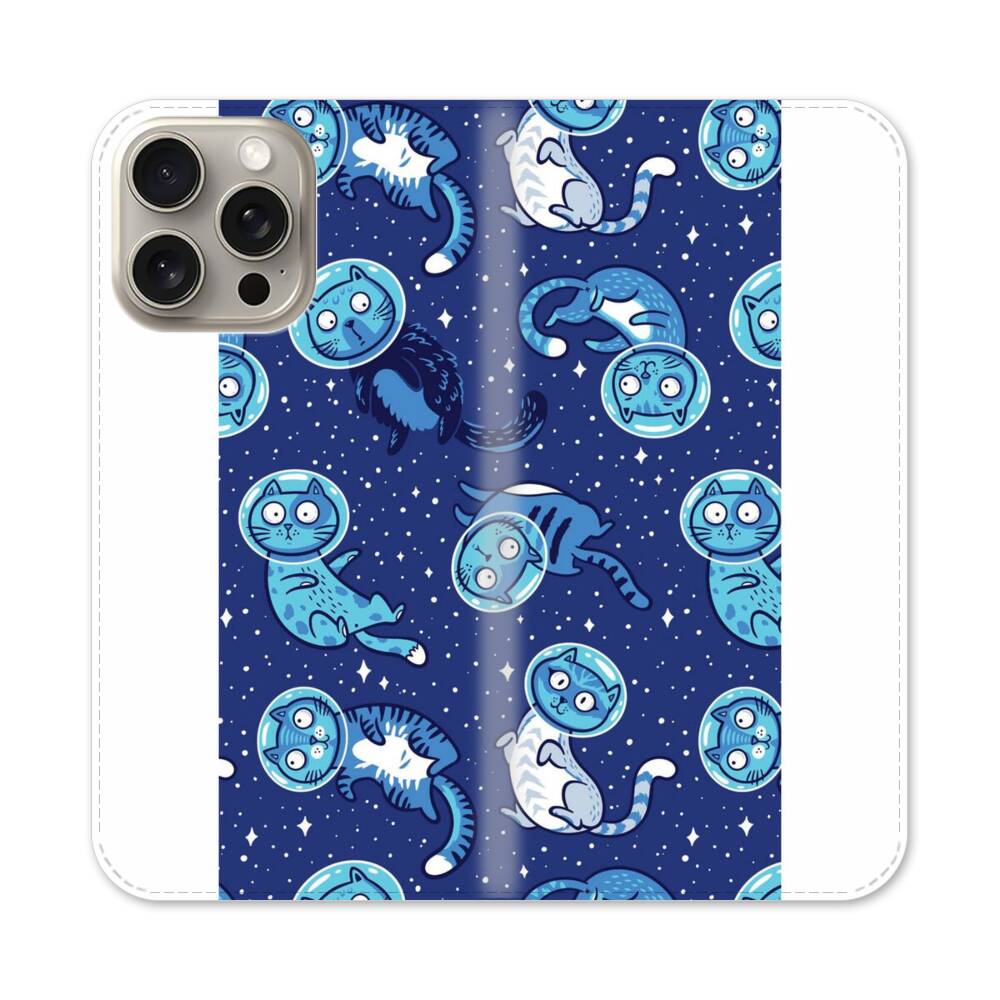 Nahtlose Muster mit Comic Katze Apple iPhone 15 Pro Max Flip Case● Seitlich klappbar