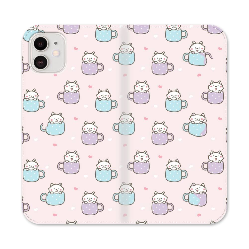 Cartoon Katze im Becher Apple iPhone 12 Flip Case● Seitlich klappbar