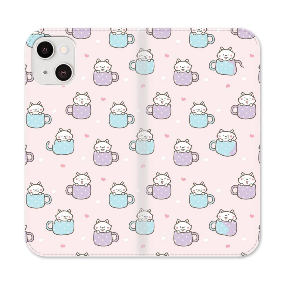 Cartoon Katze im Becher Apple iPhone 13 Mini Flip Case● Seitlich klappbar