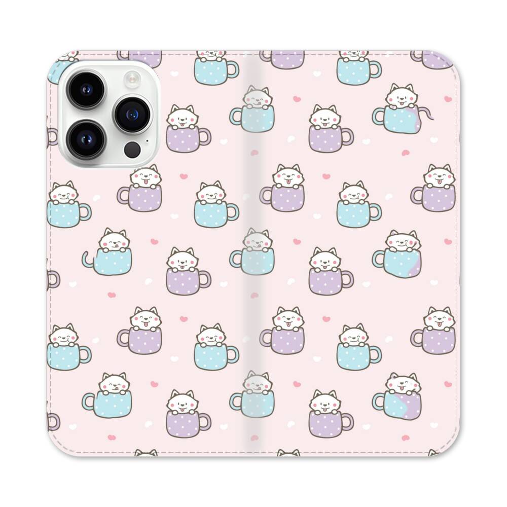Cartoon Katze im Becher Apple iPhone 14 Pro Max Flip Case● Seitlich klappbar