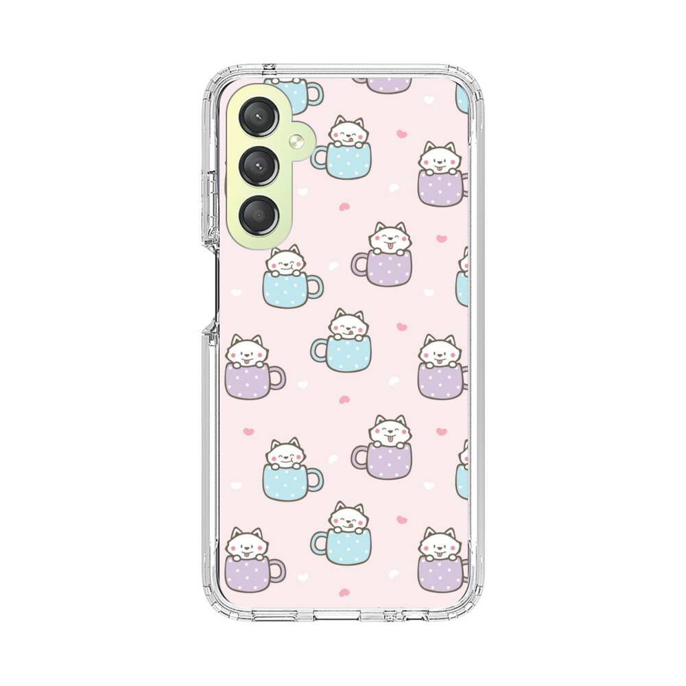 Cartoon Katze im Becher Samsung Galaxy A24 4G Silikon Hülle● Sehr robust & langlebig
