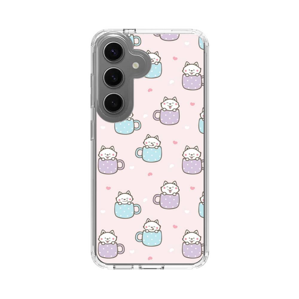 Cartoon Katze im Becher Samsung Galaxy S25 Silikon Hülle● Sehr robust & langlebig