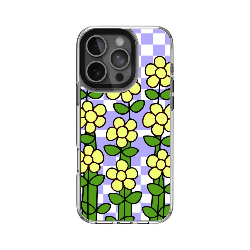 Blumen Karomuster Apple iPhone 16 Pro Silikon Hülle● Sehr robust & langlebig