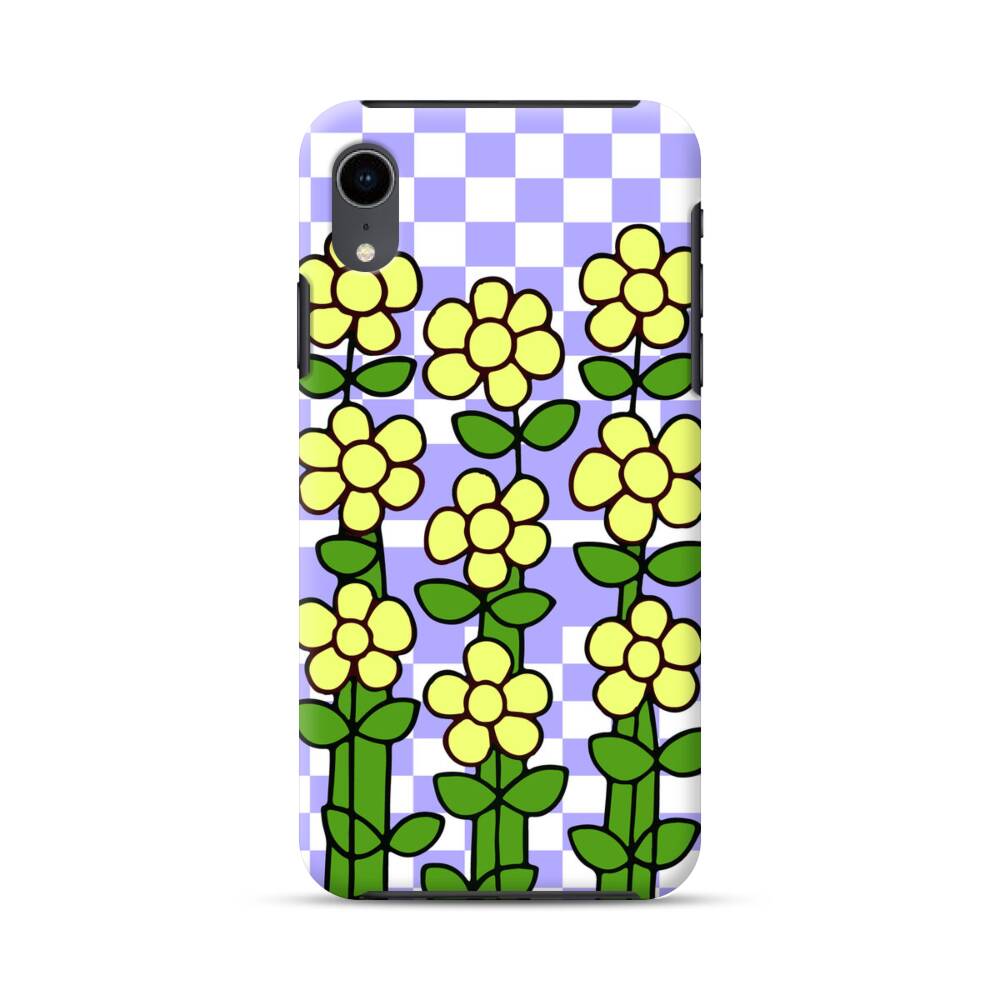 Blumen Karomuster iPhone XR Hybrid Hülle● Rundum bedruckbar