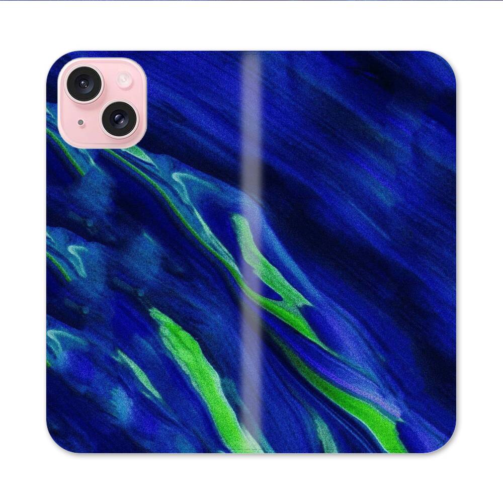 Blau Grün Graffti Apple iPhone 15 Flip Case● Seitlich klappbar
