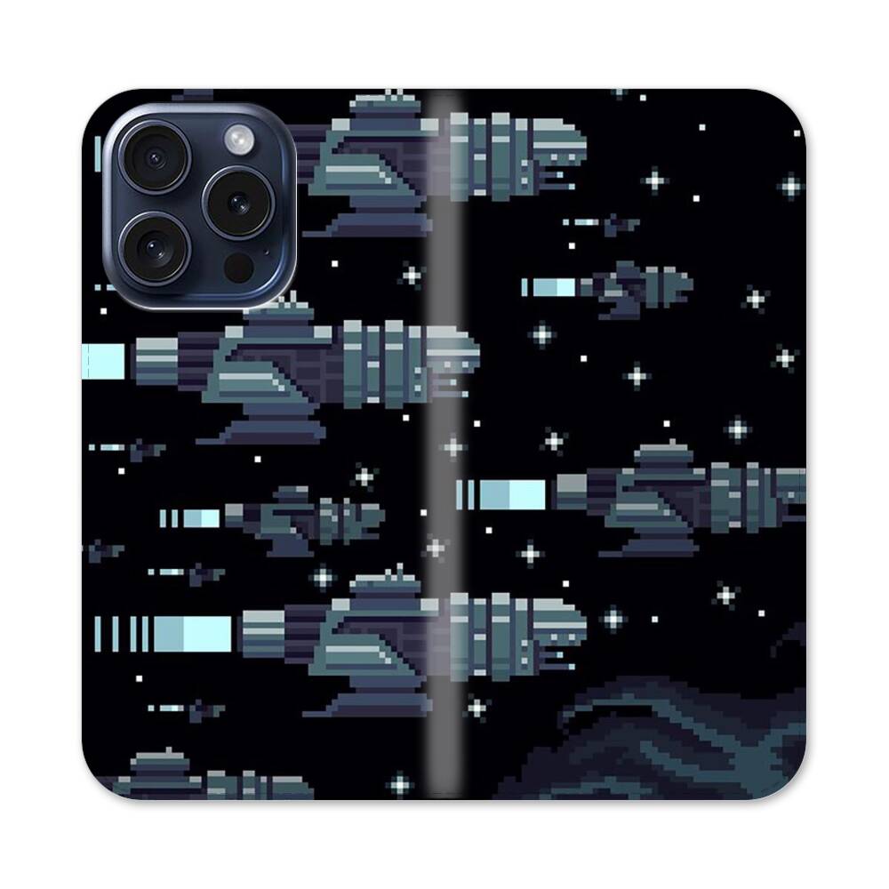 Verpixelte Raketen Apple iPhone 15 Pro Flip Case● Seitlich klappbar