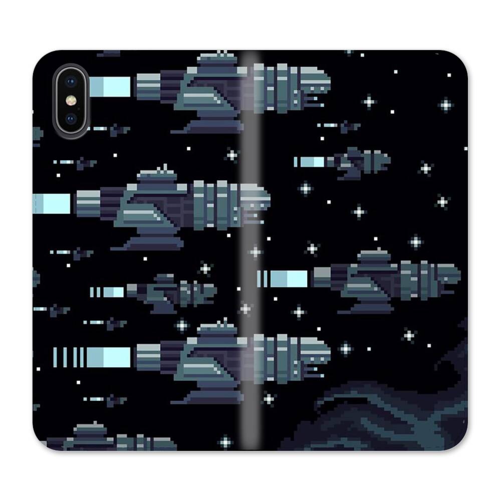 Verpixelte Raketen iPhone XS Wallet Leder Hülle● Seitlich klappbar