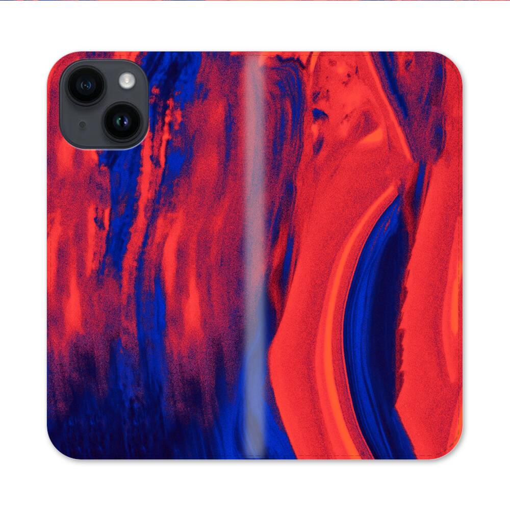 Blau Rot Bürste Apple iPhone 14 Flip Case● Seitlich klappbar