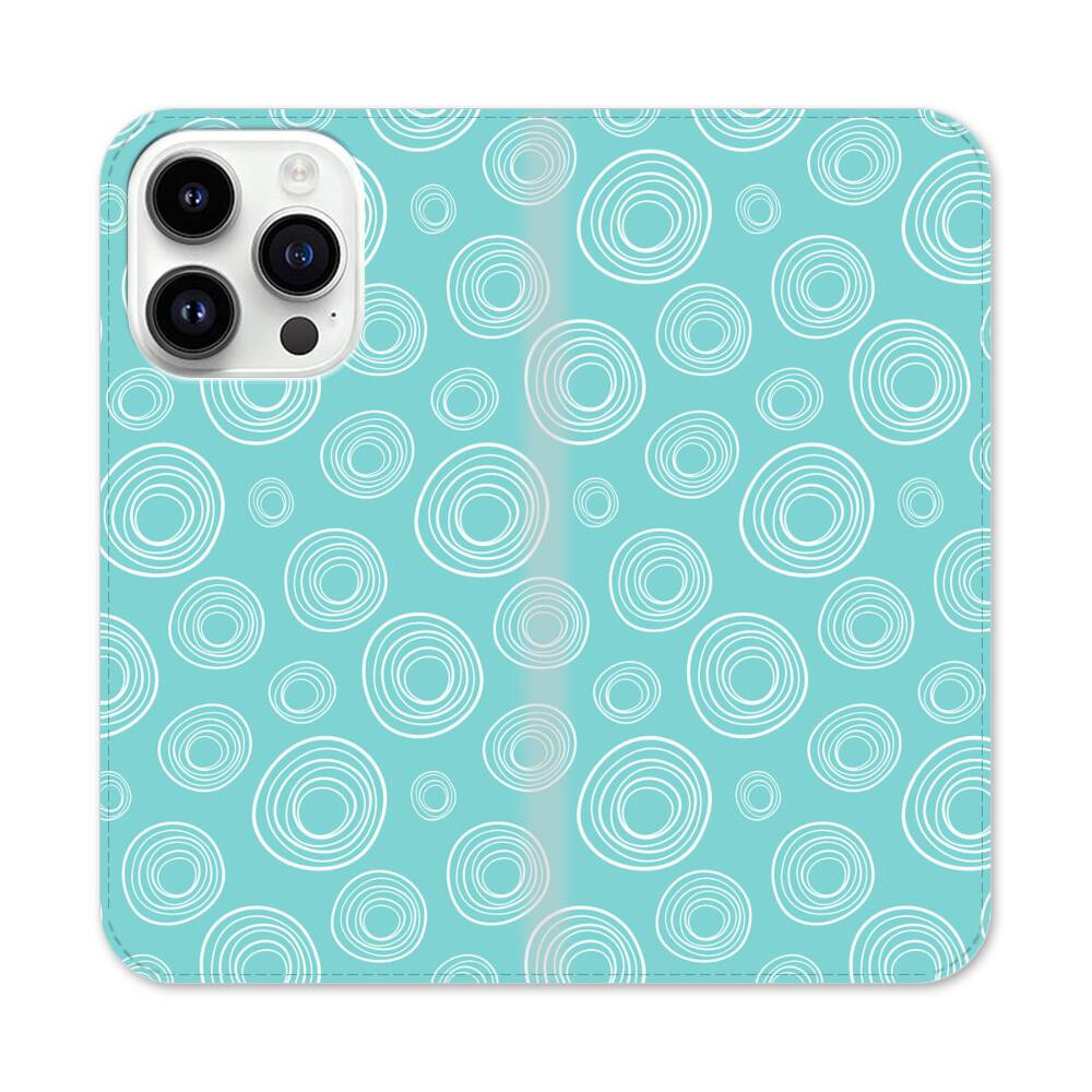 Hellblaue Kreise Apple iPhone 14 Pro Flip Case● Seitlich klappbar