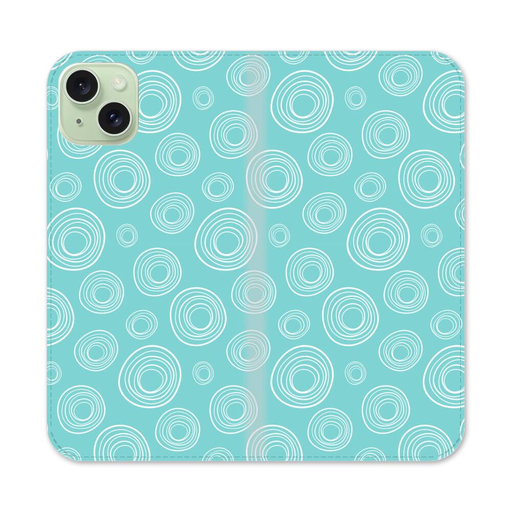 Hellblaue Kreise Apple iPhone 15 Plus Flip Case● Seitlich klappbar