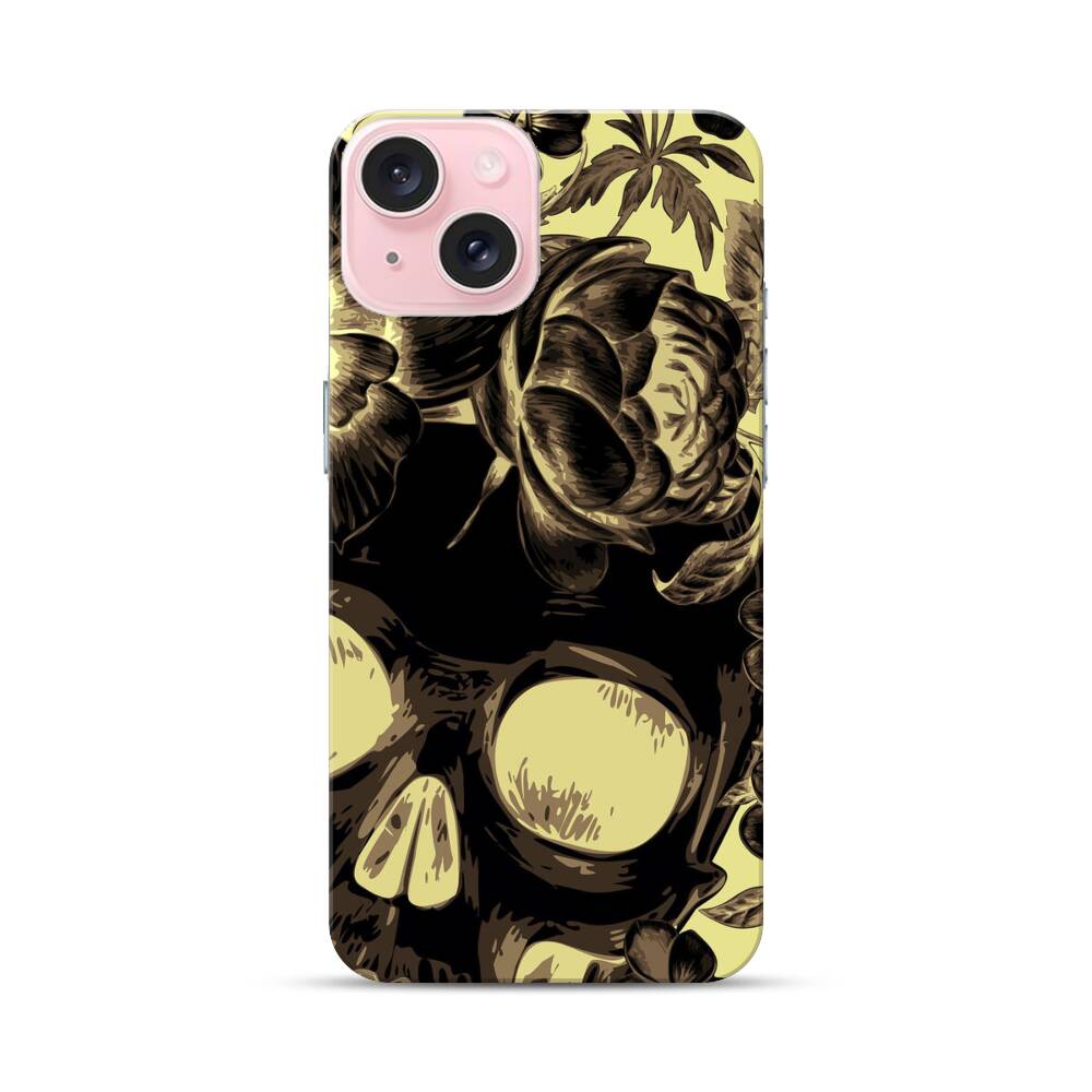 Blumen auf dem Totenschädel Apple iPhone 15 Hülle● Rundum bedruckbar