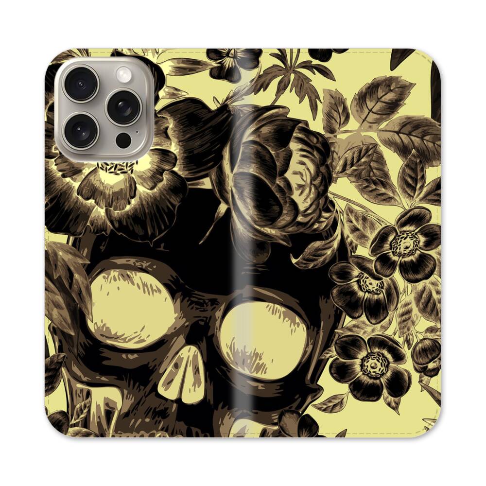 Blumen auf dem Totenschädel Apple iPhone 15 Pro Max Flip Case● Seitlich klappbar