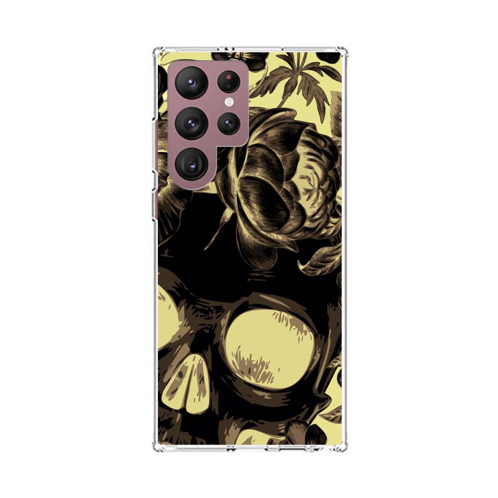 Blumen auf dem Totenschädel Samsung Galaxy S22 Ultra Silikon Hülle● Sehr robust & langlebig