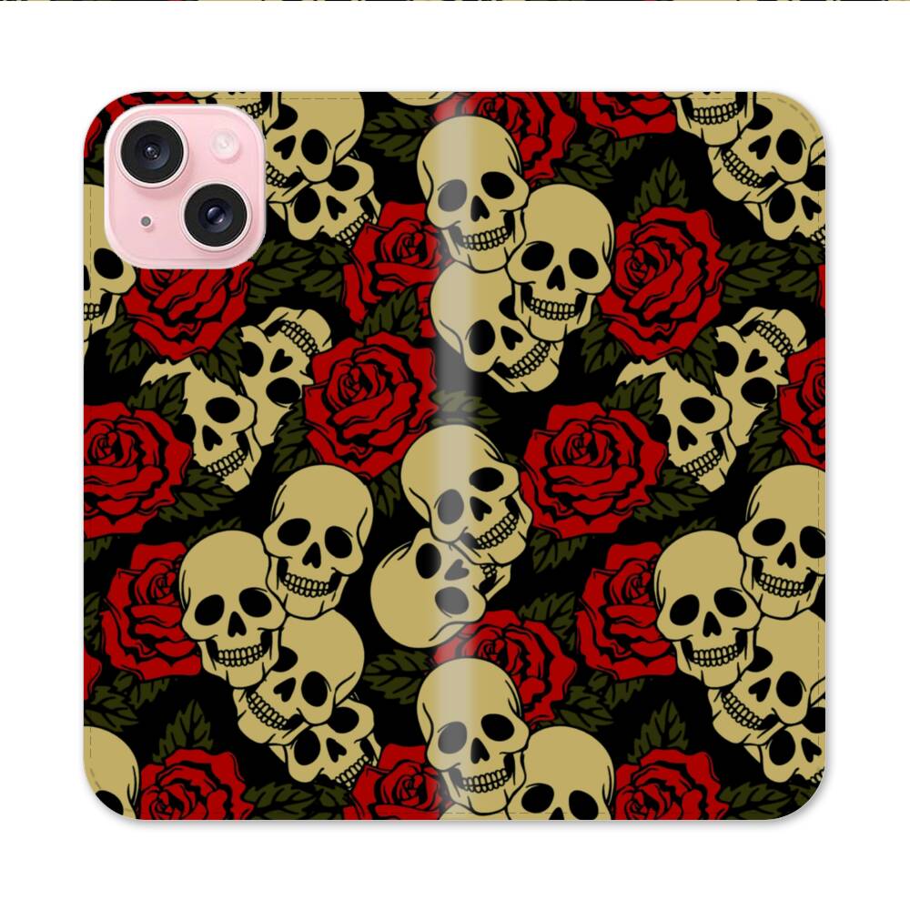 Blumen und Schädel Apple iPhone 15 Flip Case● Seitlich klappbar