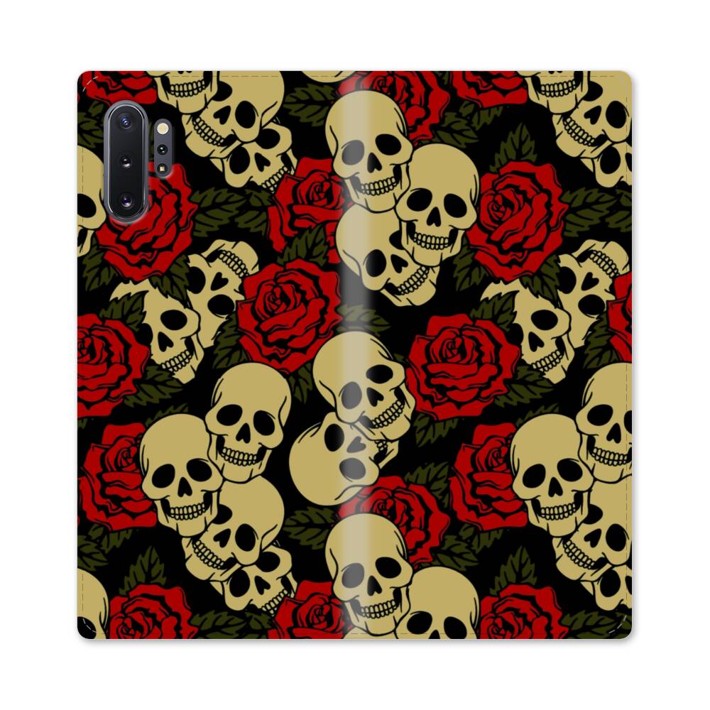 Blumen und Schädel Samsung Galaxy Note 10 Plus Flip Case● Seitlich klappbar