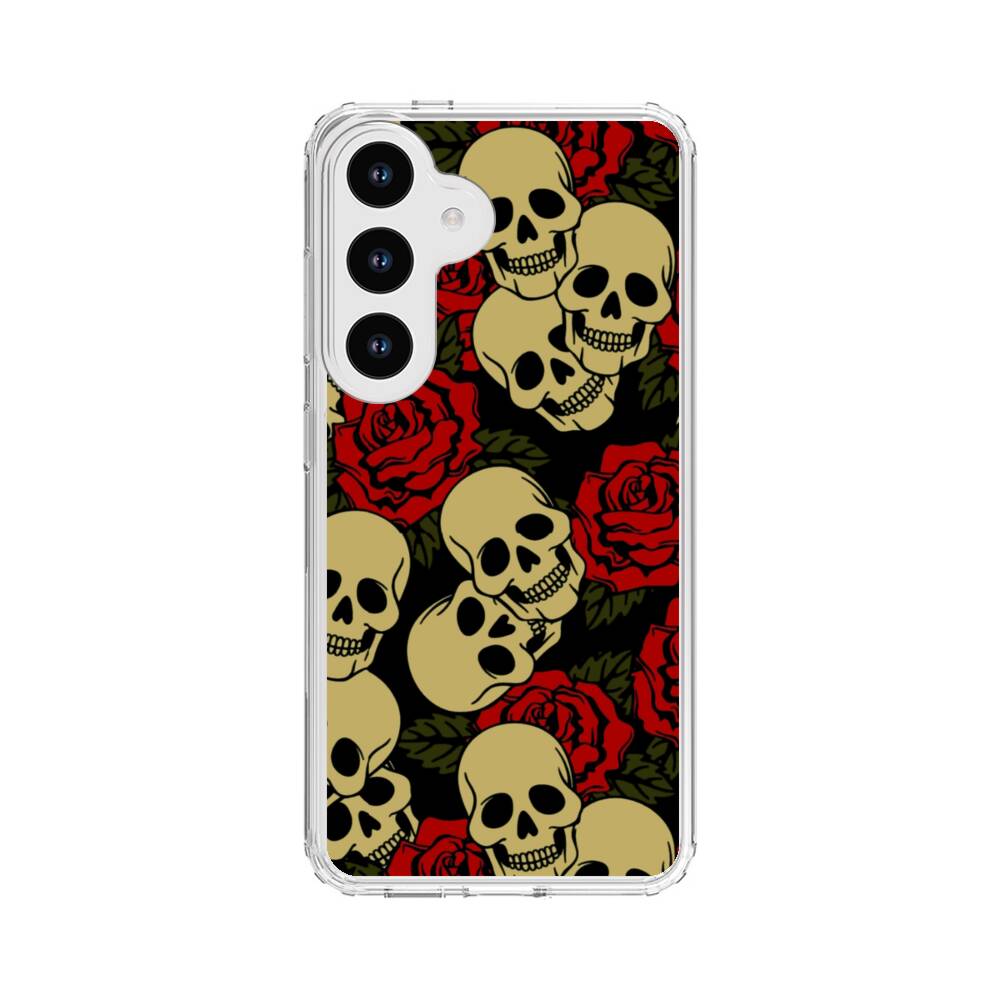 Blumen und Schädel Samsung Galaxy S24 Silikon Hülle● Sehr robust & langlebig
