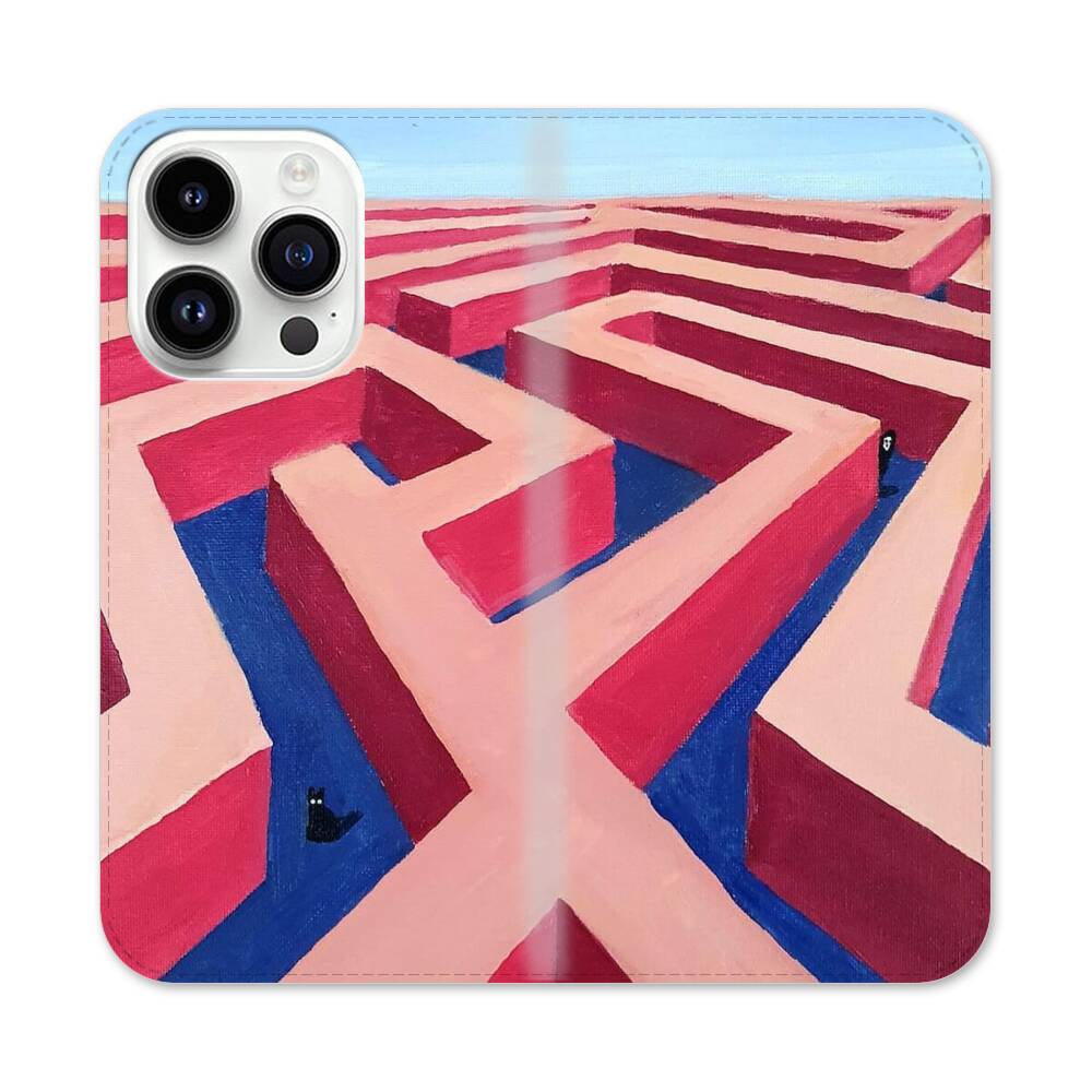 Pinke Labyrinthe Apple iPhone 14 Pro Flip Case● Seitlich klappbar