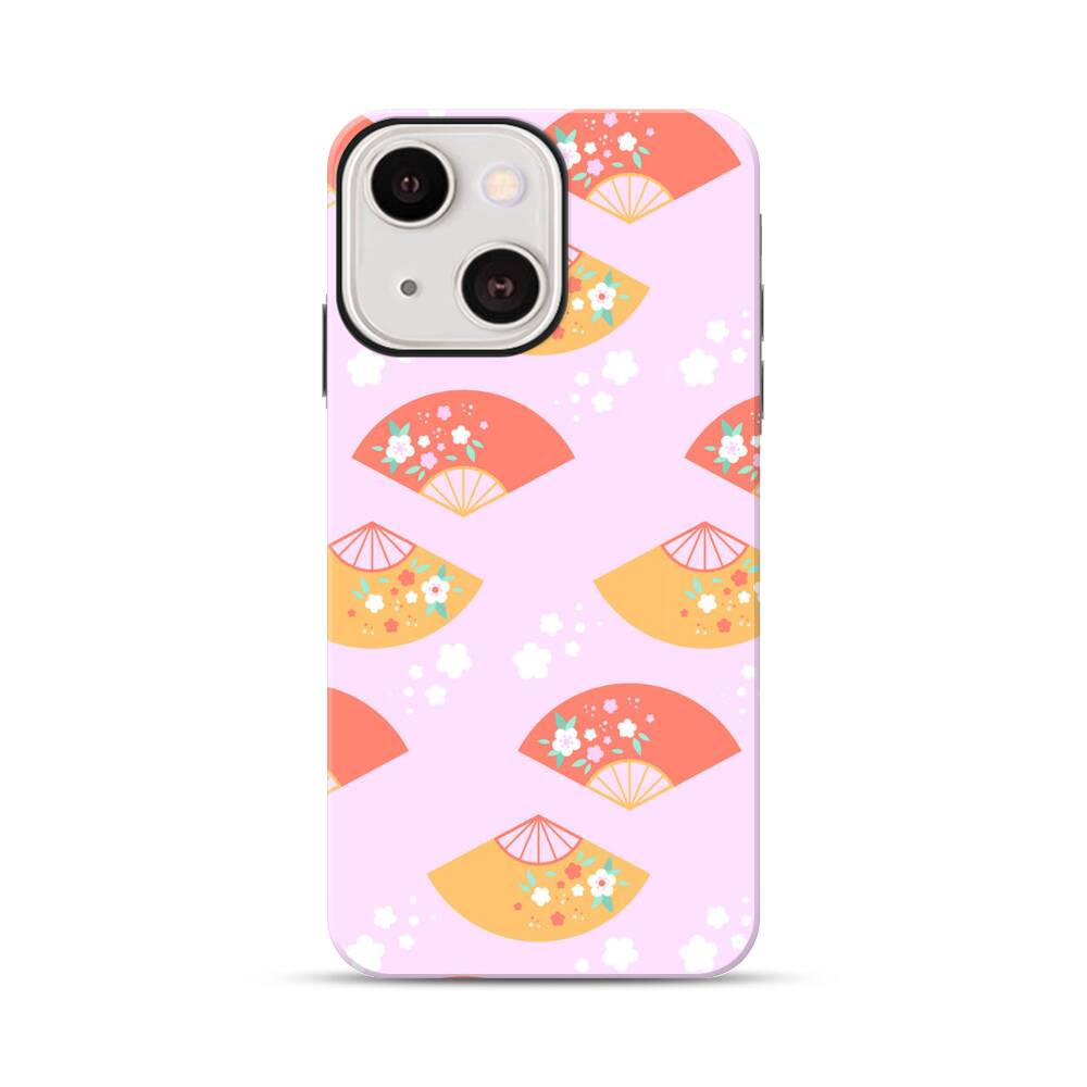 Bunte Faltfächer Muster Apple iPhone 13 Mini Hybrid Case● Rundum bedruckbar