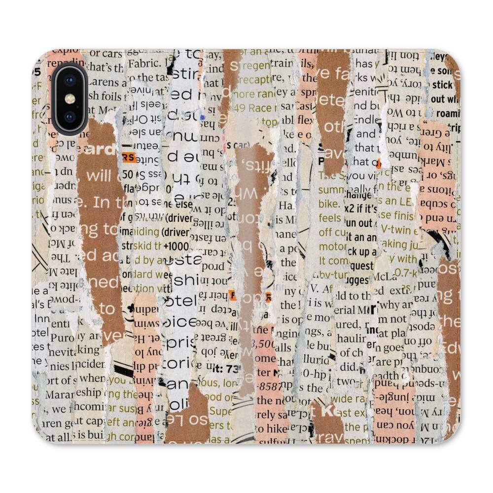 Zeitungsdruck iPhone XS Wallet Leder Hülle● Seitlich klappbar