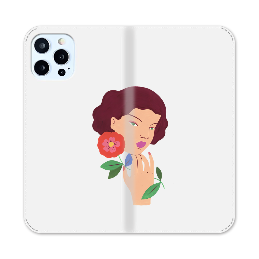 Elegante Dame mit Blumen Apple iPhone 12 Pro Flip Case● Seitlich klappbar
