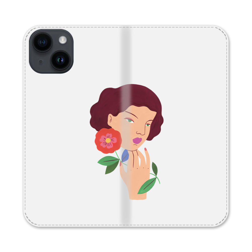 Elegante Dame mit Blumen Apple iPhone 14 Flip Case● Seitlich klappbar