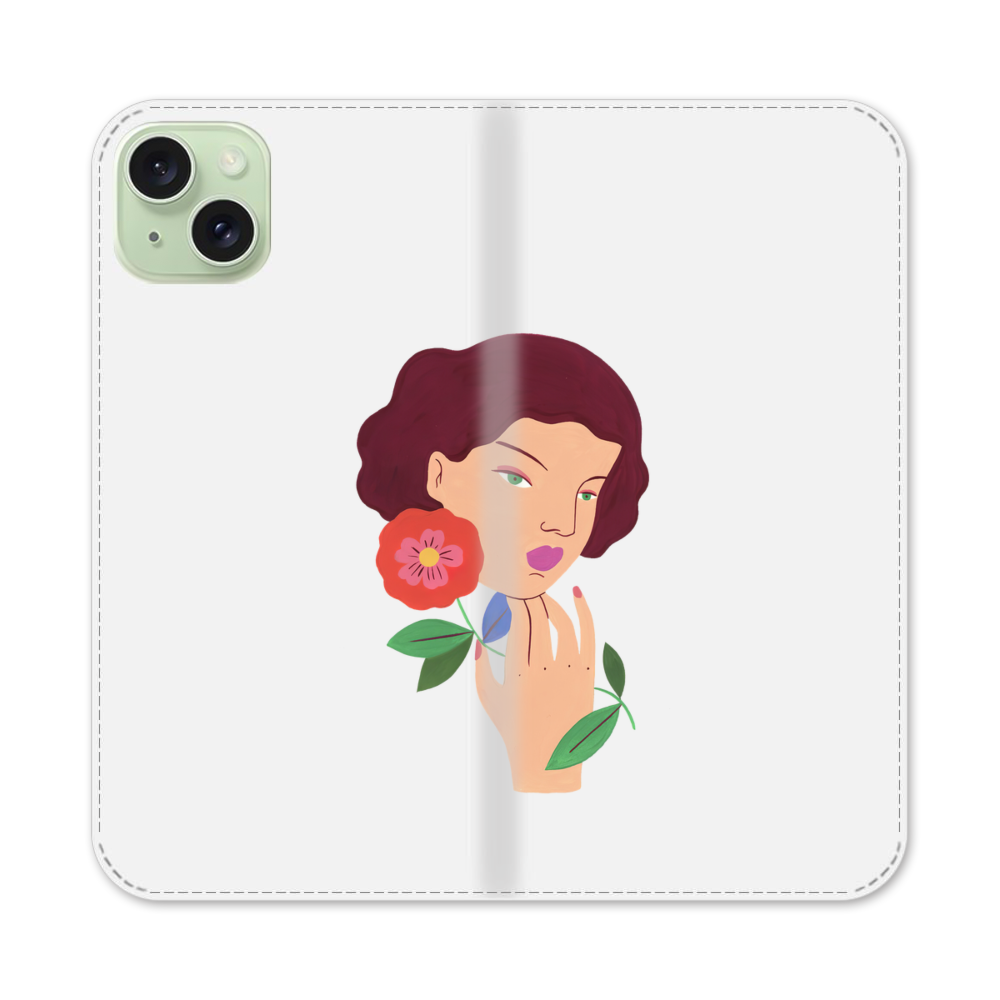 Elegante Dame mit Blumen Apple iPhone 15 Plus Flip Case● Seitlich klappbar