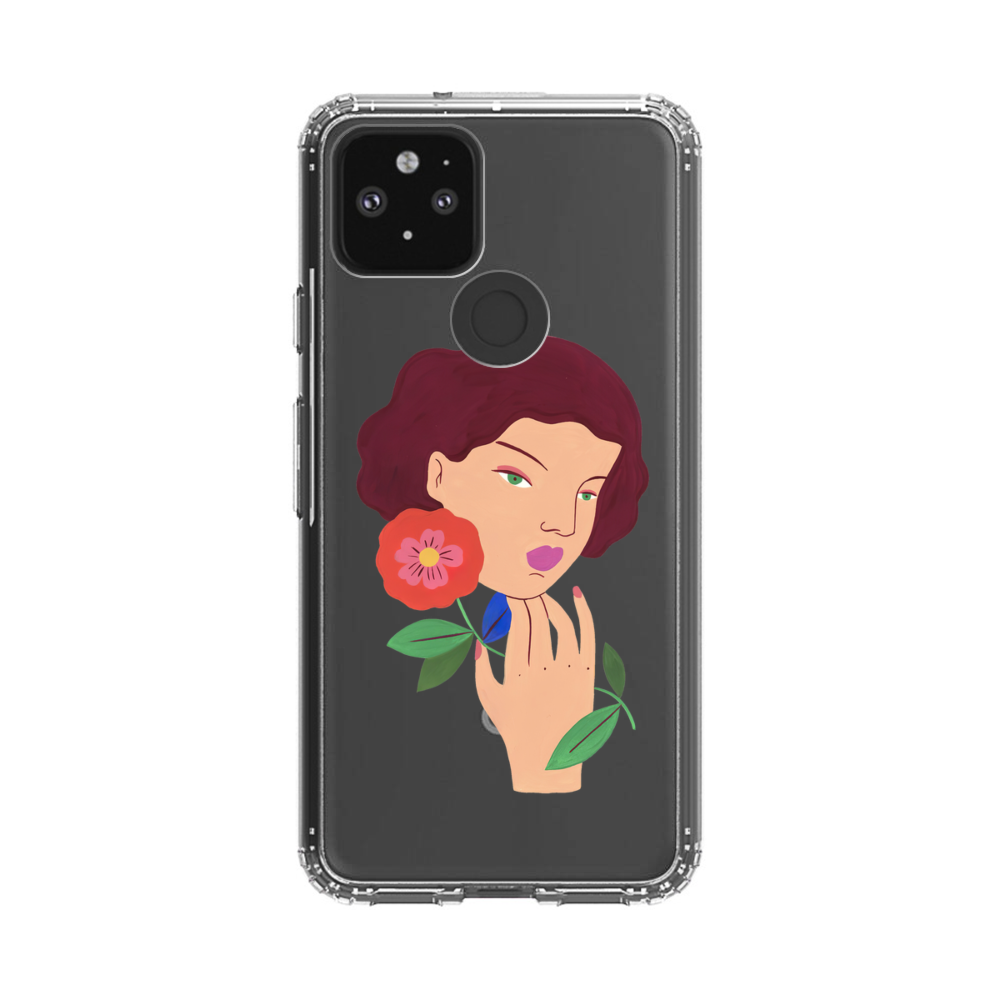 Elegante Dame mit Blumen Google Pixel 5 Silikon Hülle● Sehr robust & langlebig