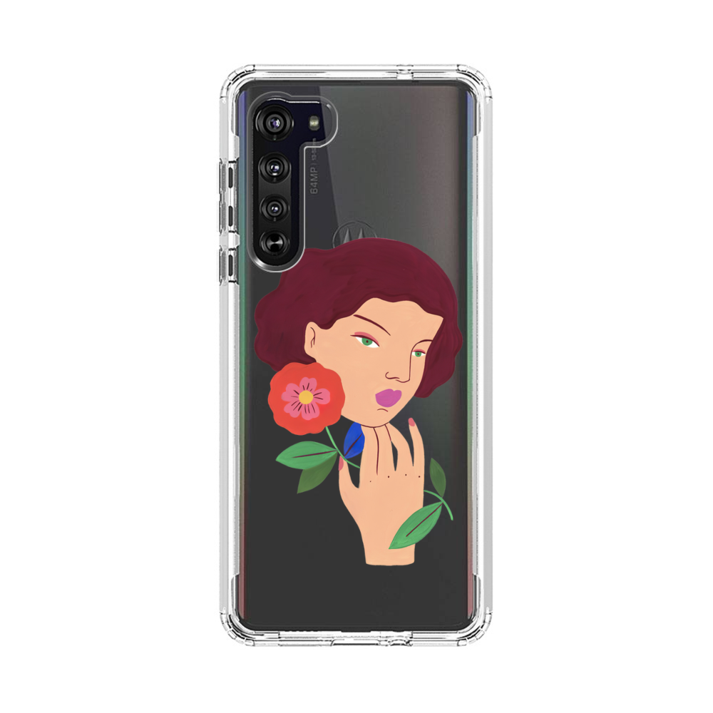 Elegante Dame mit Blumen Motorola Edge Silikon Hülle● Sehr robust & langlebig