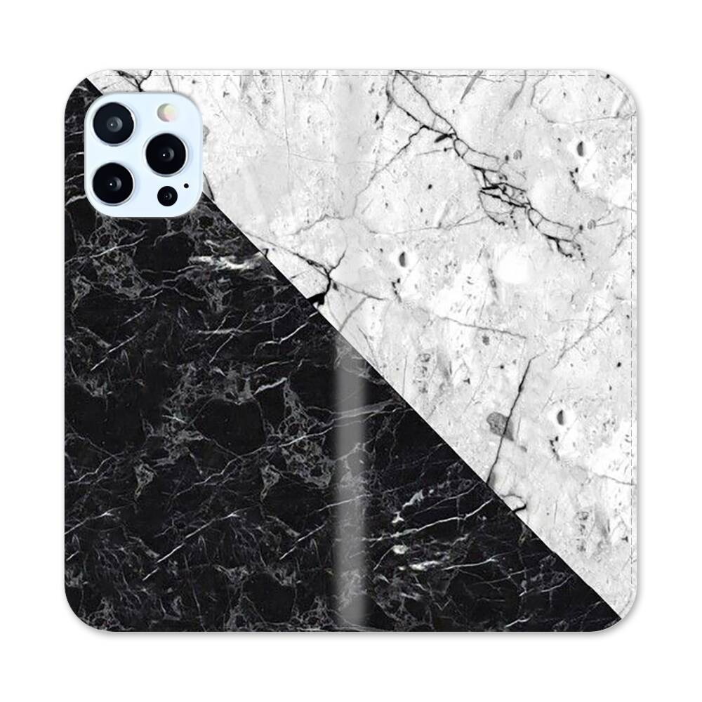 Schwarzer Weißer Marmor Apple iPhone 12 Pro Flip Case● Seitlich klappbar
