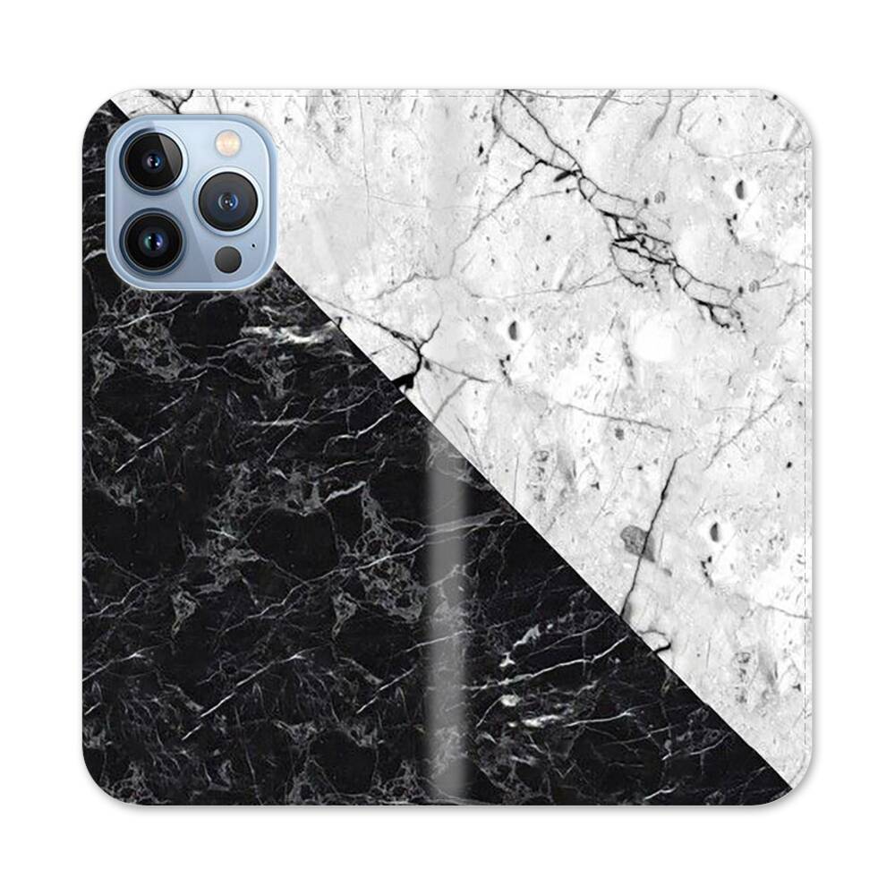 Schwarzer Weißer Marmor Apple iPhone 13 Pro Max Flip Case● Seitlich klappbar