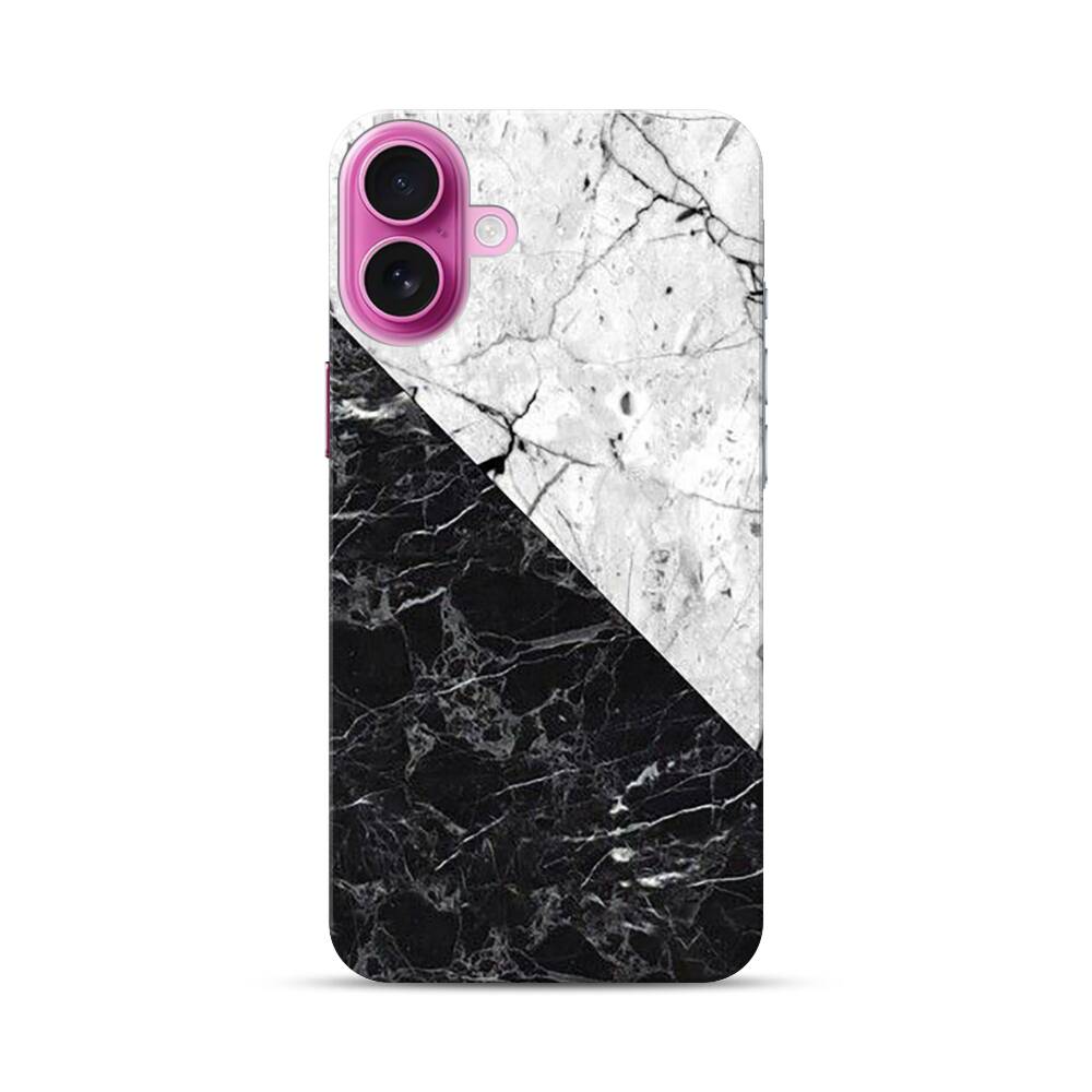 Schwarzer Weißer Marmor Apple iPhone 16 Plus Hülle● Rundum bedruckbar