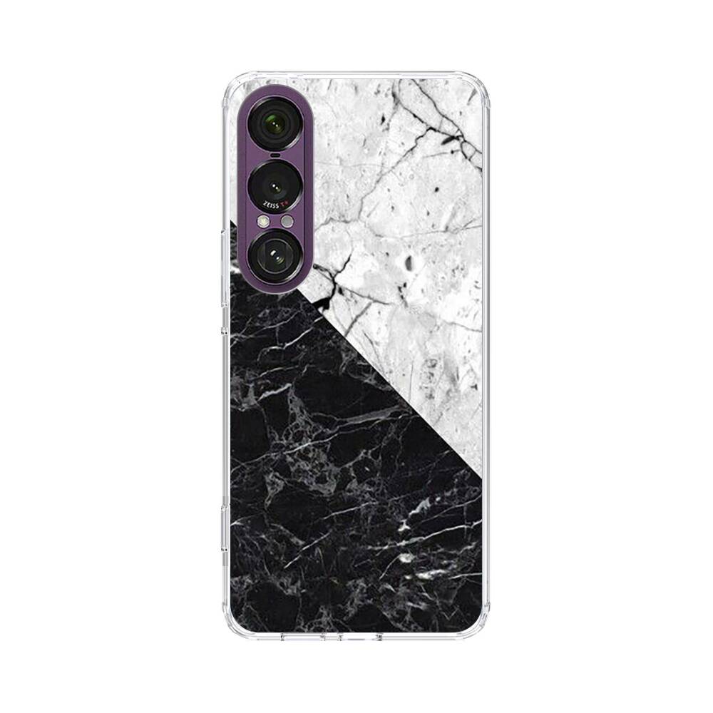 Schwarzer Weißer Marmor Sony Xperia 1 VII Silikon Hülle● Sehr robust & langlebig