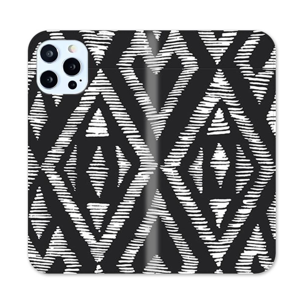 Geometrische Muster in Schwarz und Weiß Apple iPhone 12 Pro Flip Case● Seitlich klappbar