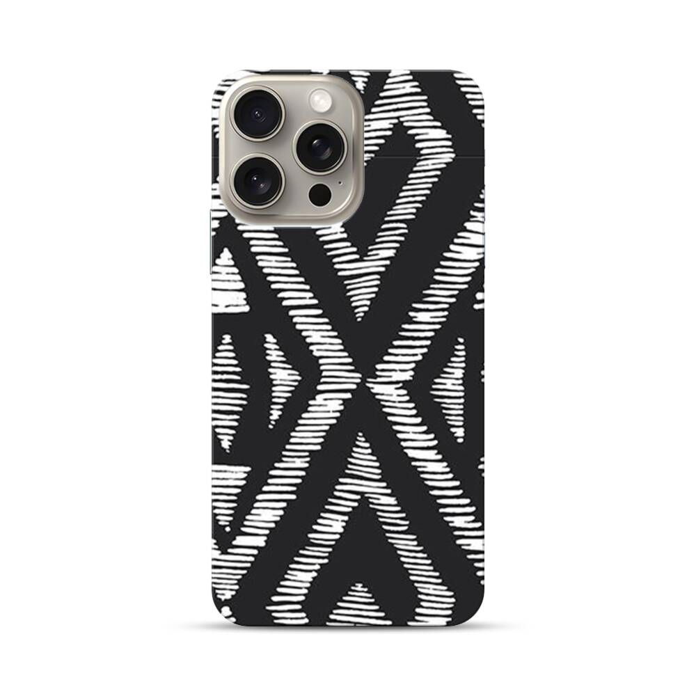 Geometrische Muster in Schwarz und Weiß Apple iPhone 15 Pro Max Hülle● Rundum bedruckbar