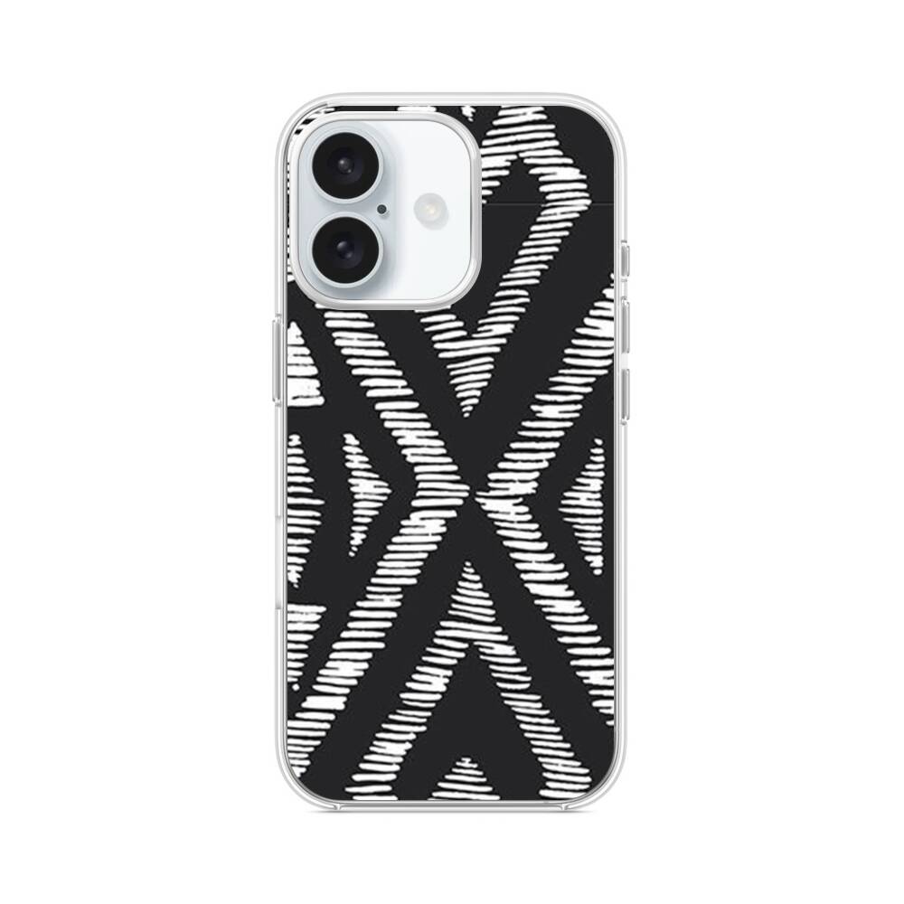 Geometrische Muster in Schwarz und Weiß iPhone 16 MagSafe‑kompatible Silikonhülle mit Kamera‑Kickstand● Sehr robust & langlebig
