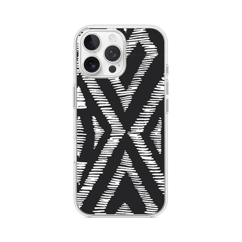 Geometrische Muster in Schwarz und Weiß iPhone 16 Pro Max MagSafe‑kompatible Silikonhülle mit Kamera‑Kickstand● Sehr robust & langlebig