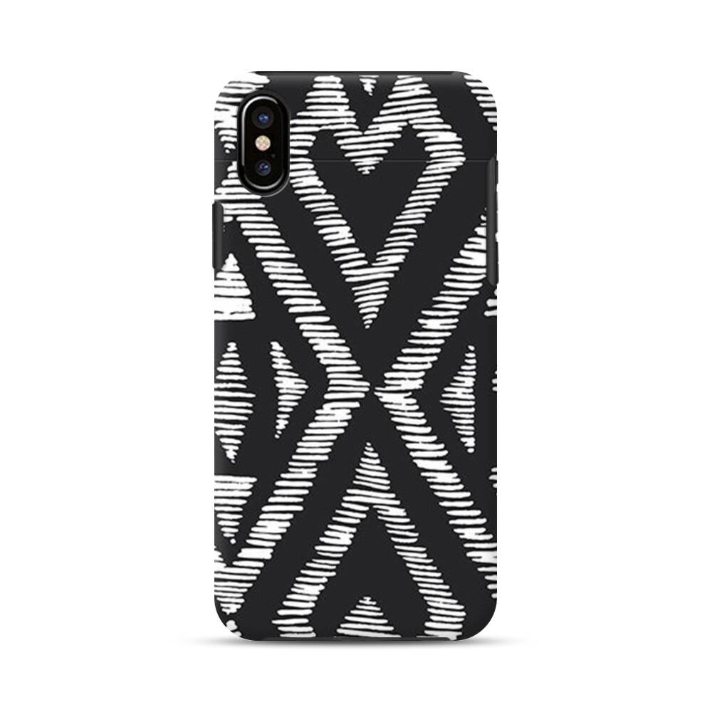 Geometrische Muster in Schwarz und Weiß iPhone XS Hybrid Hülle● Rundum bedruckbar