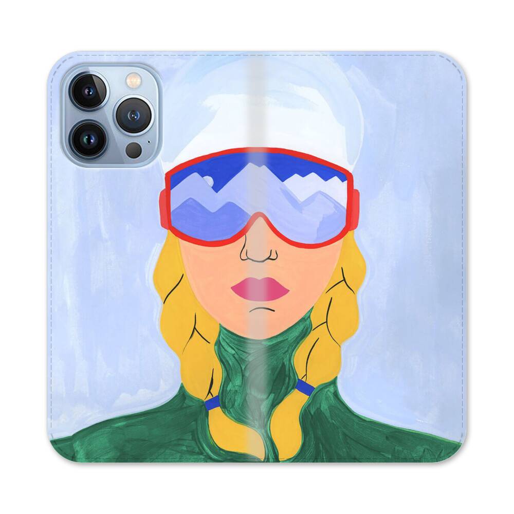 Ski-Mädchen Apple iPhone 13 Pro Flip Case● Seitlich klappbar